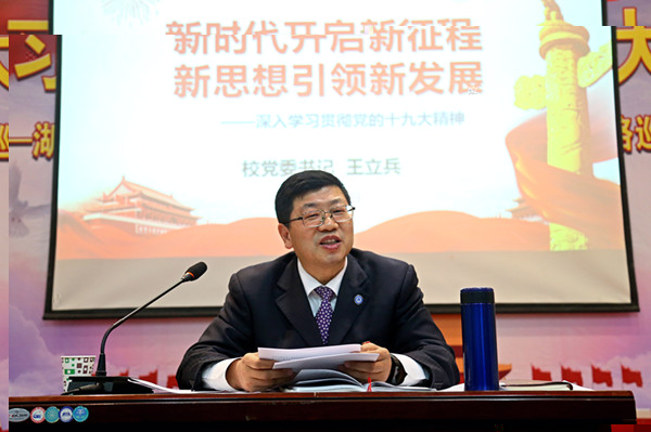 測試結束後,王立兵以“新時代開啟新征程,新思想引領新發展”為主題,圍繞“黨的十九大概況”、“準确把握十九大精神”和“貫徹落實十九大精神,促進學校快速發展的幾點思考”三個方面展開宣講。他指出,貫徹落實十九大精神,就是要堅持以習近平新時代中國特色社會主義思想為指導,圍繞“兩個一百年”奮鬥目标和“兩個階段”戰略安排,堅持全面從嚴治黨,堅持“四個服務”,堅持特色發展,不忘初心,牢記使命,砥砺前行,努力在新時代高等教育奮進的新征程上,樹立新形象,展示新作為。他強調,一是要堅持和完善黨委領導下的校長負責制,落實新時代關于全面從嚴治黨的新要求。二是要堅持社會主義辦學方向,加強和改進學校思想政治工作。三是要堅持内涵發展,加強高水平綜合性應用型大學和一流學科建設步伐。四是要紮實做好當前重點工作。他強調,要用發展的眼光看待問題,用發展的思路分析問題,用發展的成果解決問題。要精準推進轉型發展,要把特色做特做強,要全力做好安全穩定工作,要總結好今年工作,要謀劃好明年工作。王立兵還傳達了省紀委《關于2018年元旦春節期間進一步嚴明紀律加強作風建設的通知》,傳達了黃岡市委五屆六次全會和全市經濟工作會議精神。