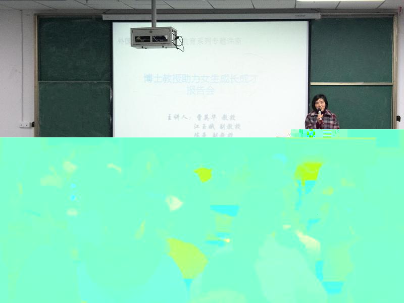 第四站——“優秀女教師助力成長”講座。4月2日晚7:00,講座于逸夫樓C03舉行。學院邀請了外院張薇薇、張慧芳和何敏三位系主任、副教授主講。三位老師分别為同學們帶來了促進英語學習的有效方法,分享了以自身經曆為同學們講述成為一名優秀女教師所走過的路和所獲所感,以“誰的青春不奮鬥”來激勵同學們在大學要努力學習,為自己的夢想奮鬥。