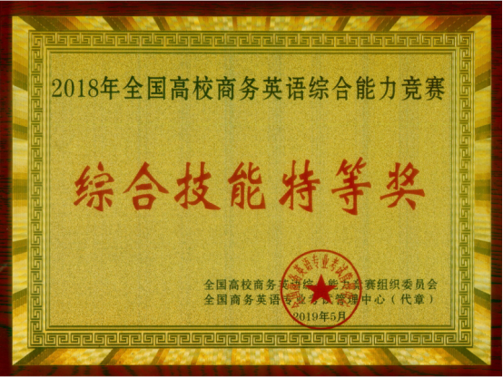 2018年全國高校商務英語綜合能力競賽最終成績于近日揭曉。經過近一年的比拼,我校獲得綜合技能特等獎。此前,3044am永利集团3044noc商務英語系學生還獲得商務英語綜合知識競賽一等獎1項,二等獎9項,三等獎15項。