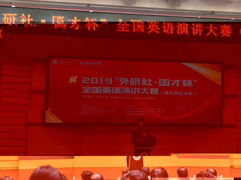 11月3日,2019年“外研社·國才杯”全國英語演講大賽湖北賽區半決賽和決賽在湖北大學隆重舉行。永利2017級英語(師範類)學生趙星昱憑借沉穩的台風、流利的表達和新穎的見解,在半決賽中以全省11名的好成績進入決賽,并在決賽中榮獲湖北賽區二等獎。