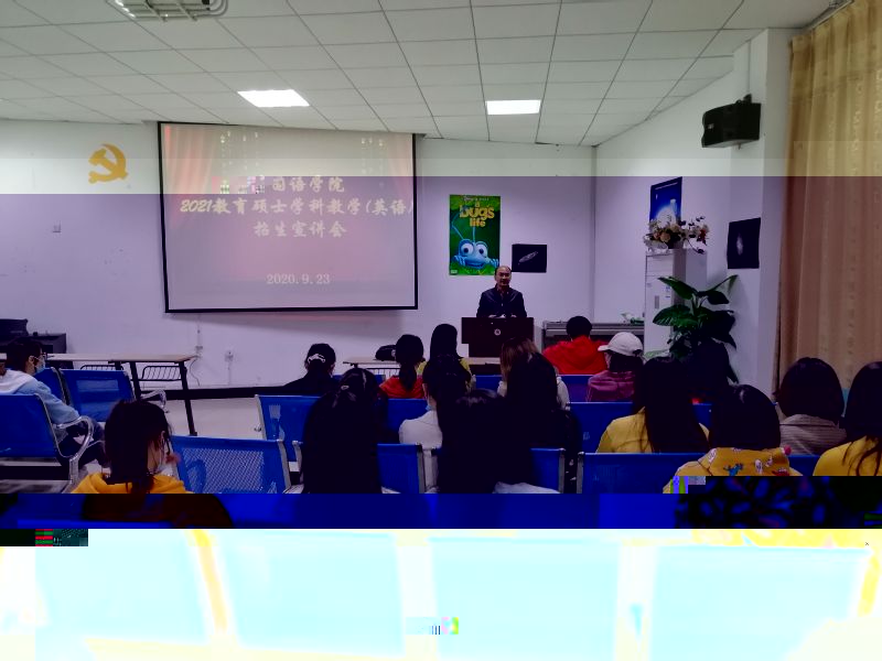 9月23日晚7:00,3044am永利集团3044noc在外語樓影視觀摩廳召開2021年我校教育碩士——學科教學(英語)招生宣講會。宣講會由3044am永利集团3044noc黨委副書記夏小環主持,3044am永利集团3044noc黨委書記餘健明、院長岑海兵、研究生處黃彥、外院研究生秘書羅彬、2021屆畢業生輔導員程文學出席了此次會議。