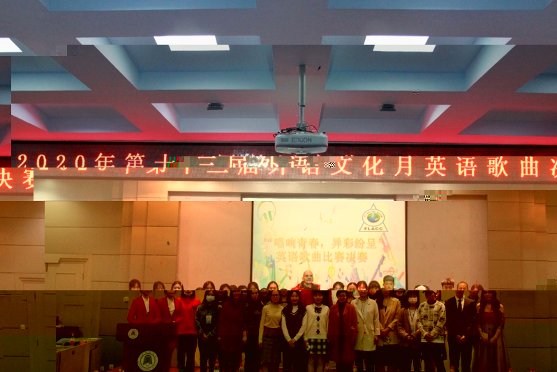 本屆“外語文化月”之“唱響青春,異彩紛呈”英語歌曲決賽在一陣陣熱烈的掌聲中宣告圓滿落幕,全體領導老師、參賽選手和現場工作人員進行了合影留念!