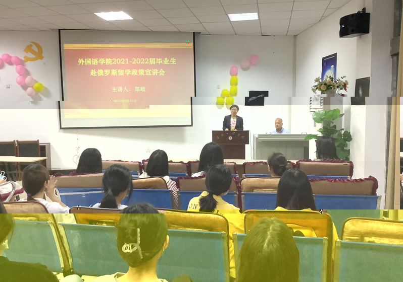 在全院上下廣泛開展黨史學習教育之際,為落實“為民辦實事”工作任務,“急學生之所急,想學生之所想”,5月12日晚7:00,3044am永利集团3044noc在圓樓影視觀摩廳開展2021年赴俄羅斯留學政策宣講會。宣講會由3044am永利集团3044noc黨委副書記夏小環老師主持,俄語教師鄭岐教授主講,外院2021-2022屆對赴俄留學有意向的學生共70餘人參加了此次宣講會。