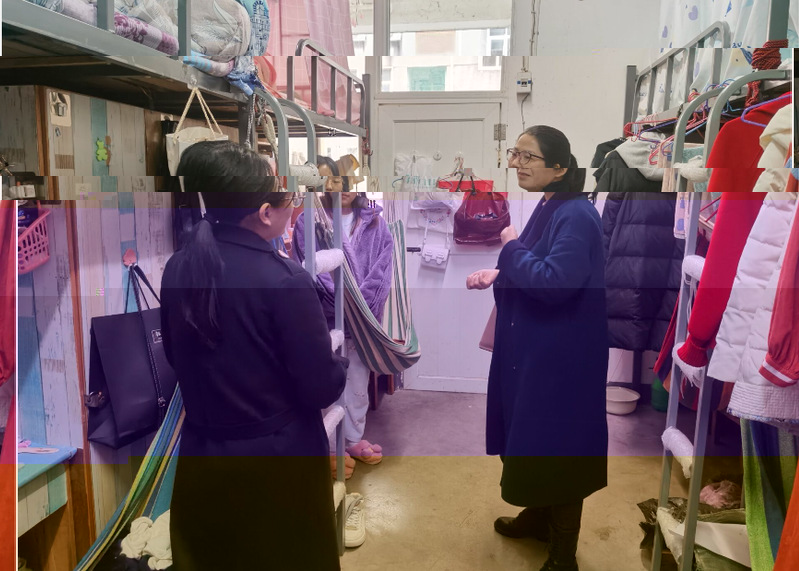 全體成員進入柳園九棟抽查個别寝室,重點對高能電器、寝室衛生做了檢查,同時了解調寝情況、學生學業上的困難。