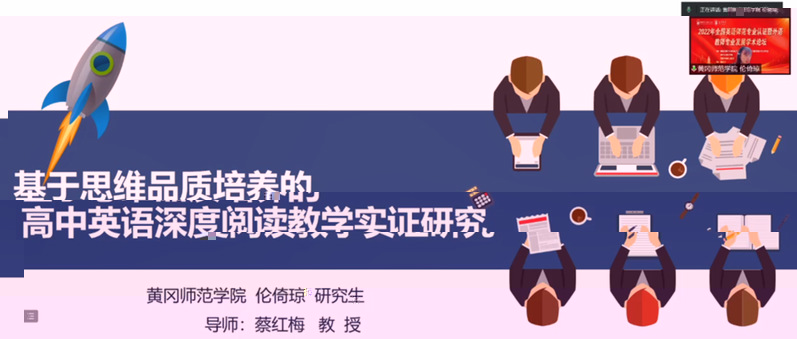 倫倚瓊以“基于思維品質培養的高中英語深度閱讀教學實驗研究”為題目參加了“基礎教育教學設計”組的研讨。倫倚瓊的發言從背景介紹、文獻綜述、研究目的與意義、研究内容、研究方法和研究重難點六個方面展示了課題研究預設,并将自己的研究困惑與參會的老師、研究生同學們進行了深入地探讨,獲得了一定的研究啟發。