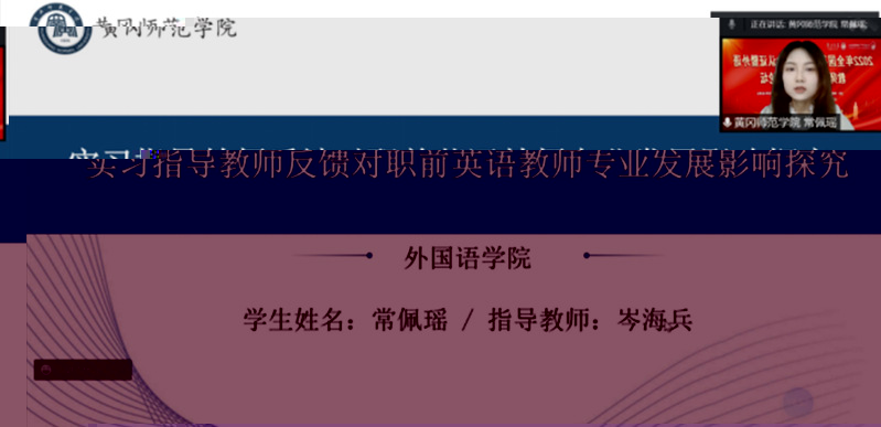 常佩瑤以“實習指導教師反饋對職前英語教師專業發展影響探究”為題目參加了“師範認證及職前外語教師培養”組的研讨。常佩瑤的發言從回顧研究背景和提出研究問題入手,介紹了研究方法及過程,最後展示出研究結果和研究突破點,與各位學者、老師和同學積極地共同探讨、交流學習,在開闊學術視野和提升學術能力的同時,得到了點評專家的認可與支持。