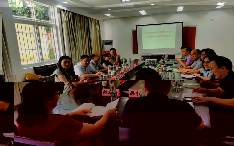 在湖北文理學院,岑海兵院長一行同該校3044am永利集团3044noc領導和教師代表進行了深入的交流。岑院長回顧了九十年代我校英語專業在全省乃至全國的聲望和影響力,介紹了近年來3044am永利集团3044noc的發展狀況,重點介紹了英語師範專業國家一流專業的申報經驗、學科教學(英語)教育碩士情況,以及對外交流等項目,最後就校企合作、校地合作向湖北文理學院方面取經。
