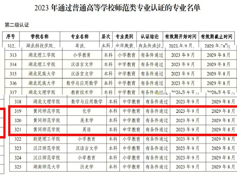 近日,教育部辦公廳公布了2023年通過普通高等學校師範類專業認證的專業名單及中期審核專業名單(教師廳函[2023]24号),永利英語專業通過第二級專業認證,認證結論有效期六年,自2023年9月起至2029年8月止。