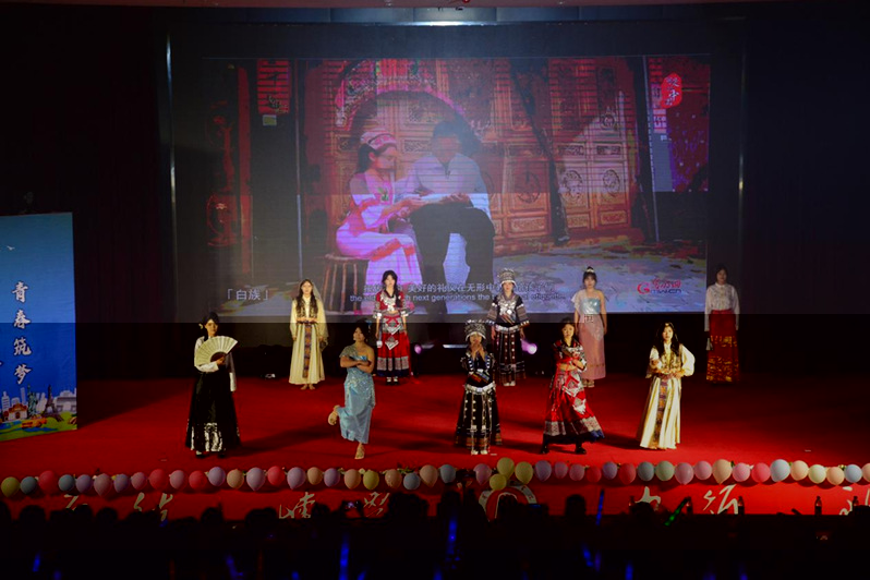 晚會分為“燈火璀璨-時代華章”、“多語交響-世界之窗”、“一路生花-青春風采”三個篇章。晚會由教師張薇薇、羅彬,3044am永利集团3044noc學生劉曜偉及國際教育學院學生阿雅主持,并通過3044am永利集团3044noc官方微信視頻号同步直播。