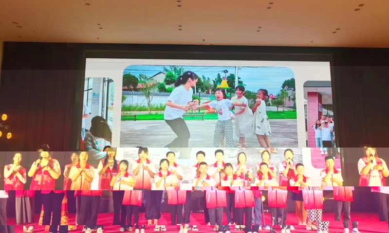 “暖陽”社會實踐團隊聯合六福灣社區小朋友們帶來節目《暖陽沐人心》,唱響“志之所向、願之所在”的青春誓言,小朋友稚嫩的童音點燃現場氛圍。